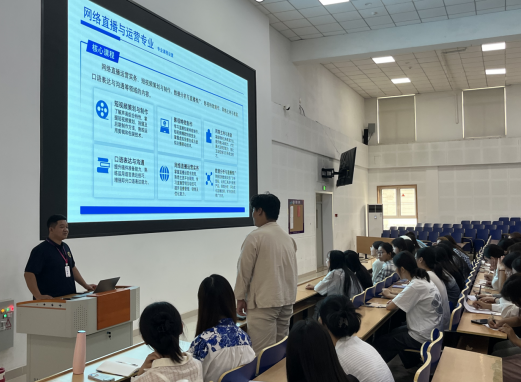 解读会伊始,周老师以“融媒时代,直播未来”为主题,系统阐述了该专业的鲜明特色与核心优势。网络直播与运营专业紧密契合国家数字经济发展战略,聚焦新媒体传播与电商直播业态,致力于培养既懂内容创作又精通运营管理、兼具艺术审美与技术应用能力的复合型人才。课程体系融合传播学、网络营销、数字媒体技术等多学科视野,突出“实战引领、项目驱动”的教学模式,使学生能够在真实业态环境中锤炼技能、积累经验。专业介绍内容大致分为六个板块,分别是关于专业人才培养方案的介绍、所开设的专业课程介绍、学历与提升、与专业相关的证书与比赛、就业前景与规划以及各项规章制度,考试制度等。介绍完毕后,现场学生热情洋溢,气氛高涨,作为云商传媒学院去年新开设的专业,学生听完介绍后收获颇丰,对接下来的专业学习与校园生活充满了热情。