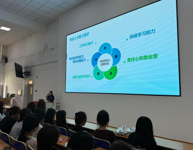 介绍会最后,专业教师向新生送上暖心寄语:“网络营销与直播电商是充满活力与机遇的领域,希望大家在未来的学习中,保持好奇心、进取心,扎实掌握专业知识,积极参与实践锻炼,找准自己的职业方向,在这个行业中发光发热,成为兼具理论素养与实践能力的专业人才。”