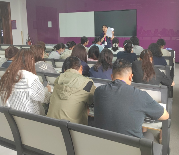随后,教学秘书赵冯冯围绕“分工明确、操作规范、应急有序”三大目标,开展迎新工作专项培训。她首先明确了各岗位人员的迎新职责,确保“事事有人管、人人有专责”;接着聚焦钉钉工作台的实操应用,通过现场演示、步骤拆解,详细讲解新生学院报到登记、宿舍分配确认等核心功能的操作流程,确保工作人员熟练掌握,提升迎新效率;同时,针对往年迎新工作中可能出现的信息登记误差、突发需求响应等问题,逐一给出解决方案与应急处置预案,为迎新工作平稳推进筑牢“安全阀”。