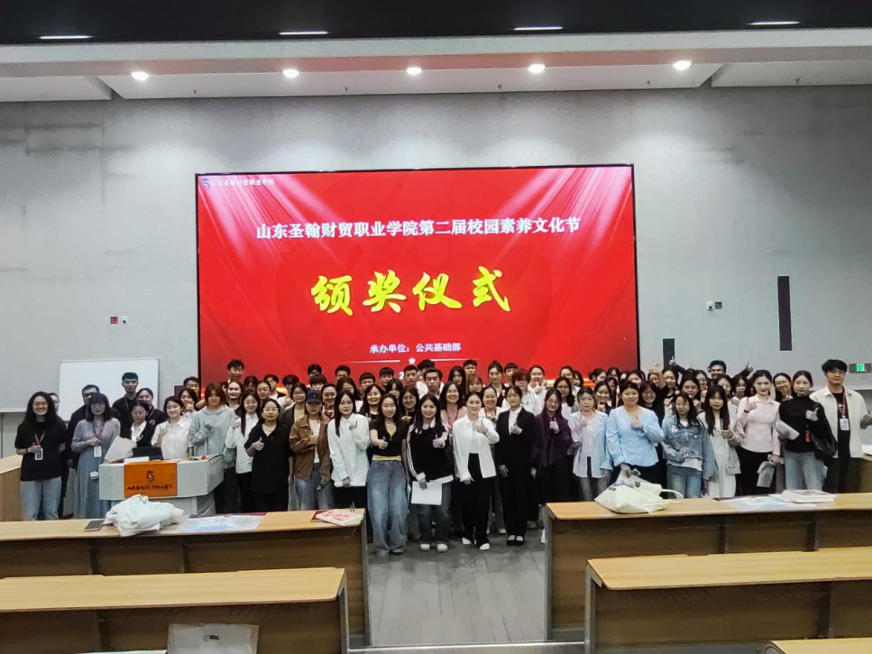9月29日,公共基础部在学校第四报告厅举行山东圣翰财贸职业学院第二届校园素养文化节颁奖仪式。此次颁奖仪式聚焦师生素养提升成果,全面总结文化节期间各项赛事开展情况,为在系列竞赛中脱颖而出的师生颁发荣誉,进一步激发全校师生对语言文字、数学学科及教学能力提升的热情,营造浓厚的校园文化与学术氛围。公共基础部主任阎君梅、副主任黄海英、各教研室教师及获奖学生共同参与仪式,见证师生们在素养提升之路上的亮眼成绩。