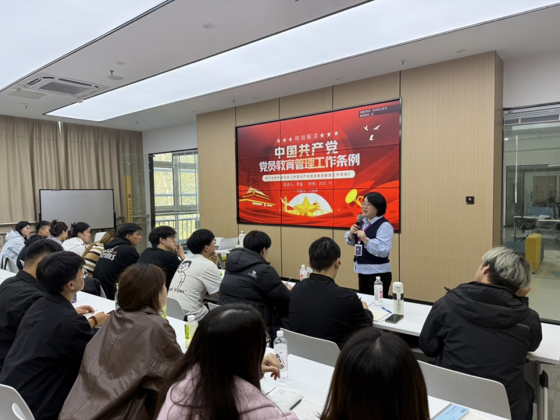 培训课堂上,王君萍以清晰的逻辑、生动的语言,将《条例》解读与青年学子成长紧密结合。她从《条例》出台的时代背景切入,结合党的十八大以来的辉煌成就,让学员深刻认识到党员教育管理工作的重要性;在讲解党员发展程序、组织关系管理等实操内容时,她结合自身参与党支部建设的经历,用“案例分析+疑问解答”的方式,帮助学员理清流程、规避误区。