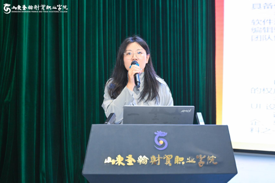 随后,数字媒体技术专业负责人李晓晶进行专业整体介绍。李晓晶围绕专业职业证书、技能大赛、专升本与国际交流及教学管理制度四大核心内容展开,为新生勾勒出清晰的专业学习蓝图。