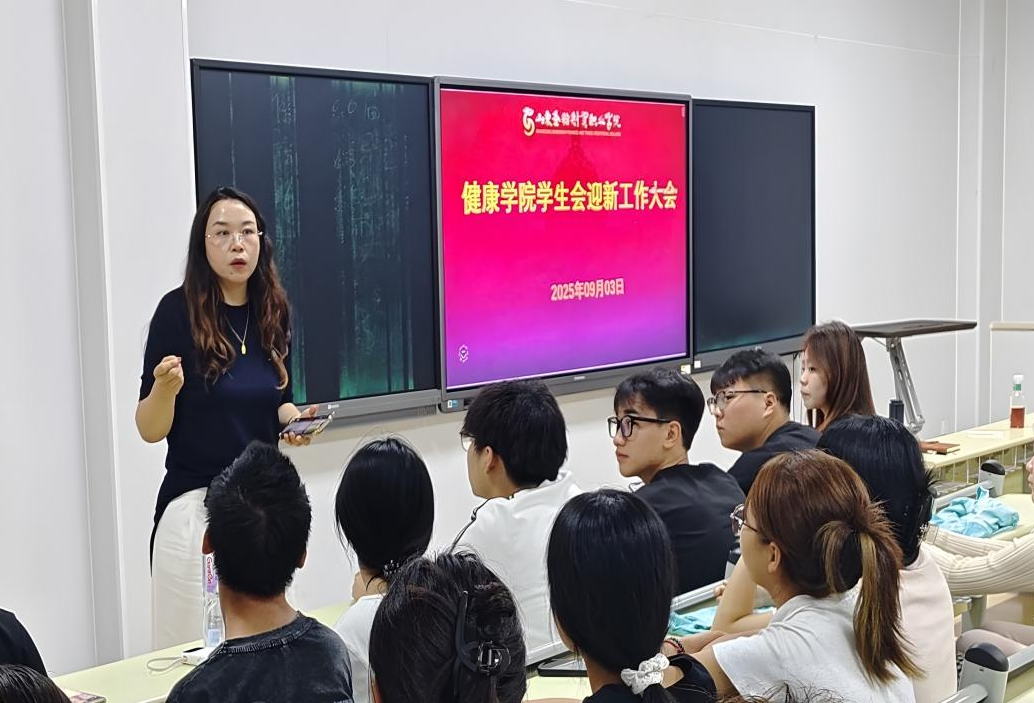 2025年9月3日,健康学院召开学生会迎新工作大会,全面部署新学期迎新工作。学管院长杨其义、团总支书记张红伟与学生干部志愿者们齐聚一堂,以“健康护航者”的使命担当,开启2025级新生“从家门到校门”的温暖旅程。