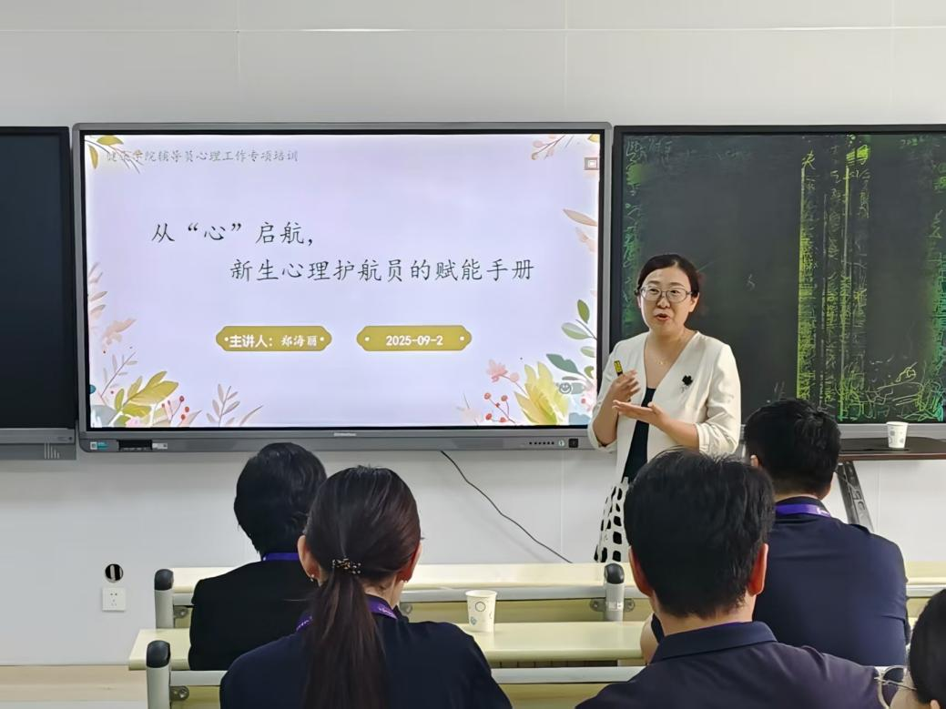 为构建全方位新生心理健康支持体系,助力学生平稳度过大学适应期,2025年9月2日,健康学院特邀心理专家郑海丽,为学院全体教职工开展“从‘心’启航,新生心理护航员的赋能”专题培训,共同为新生心理健康工作蓄力赋能。