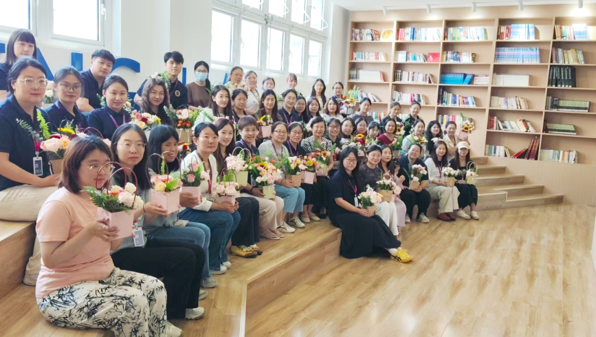 活动结束时,教师们手捧自制花艺合影,灿烂笑容与缤纷花束相映,温暖瞬间在此定格。