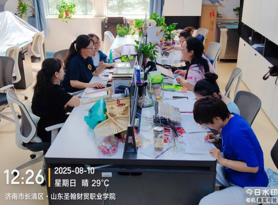 随后,在王学屏的带领下,学院8位教师迅速组建专项工作组,办公室自此成为了大家暑期攻坚的“主战场”。王学屏始终坚守一线,既当“指挥员”又当“战斗员”:她结合自身丰富的教学管理经验,为老师们细化分工。与此同时,肖凌凤时常进行督导工作,从专业群定位、课程体系优化到人才培养模式创新,逐页审阅材料、逐点提出修改意见,确保每一部分都精准契合“对接准、服务优”的核心目标;刘俊须则聚焦产业适配性,带领老师们深入调研区域内多家医养健康企业,将产业痛点、岗位需求转化为材料中的亮点,让专业群的竞争优势更加突出。