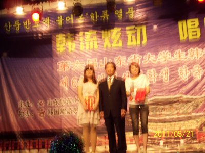 5月21号,由山东师范大学主办、韩国旅游发展局协办的“韩流炫动 唱响山东----第六届山东省大学生韩语歌曲大赛”在山东师范大学成功举行。韩国驻青岛总领事馆领事吴世天、韩国旅游发展局支社长郑荣文、韩国著名诗人朴海美、济南韩人商工会会长李元镛、大韩航空济南支店长沈奎锡等八位韩国嘉宾及山东省人民政府外事办公室亚洲处处长徐晓春出席并担任评委。