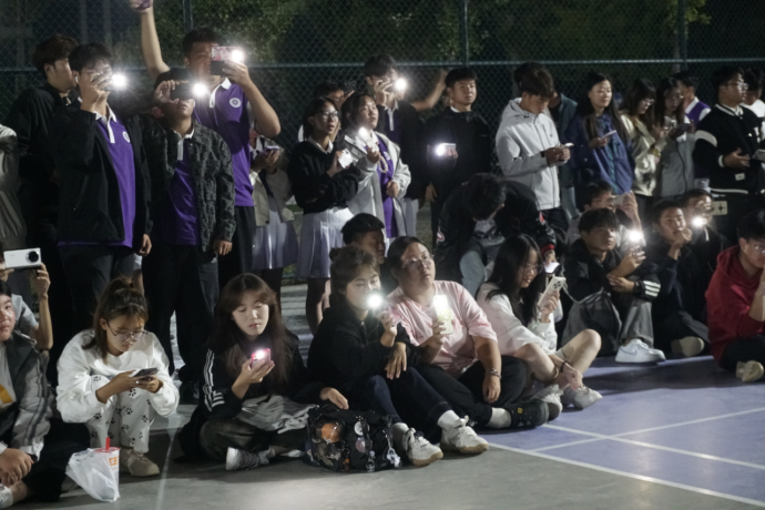 拉歌过程中,各班级创意迭出,亮点纷呈:有的挥舞着精心定制的手牌呼应歌词,有的编排了简单可爱的手势舞增添趣味,更有班级主动邀请现场观众一同加入合唱,让欢乐的氛围蔓延全场。韩院长表示:“平时各班级之间交流较少,这次拉歌活动让大家感觉像一家人一样,心里特别温暖。”当孟书记登台献唱《等下一个天亮》时,温柔而有力的歌声汇聚成一股温暖的洪流,将晚会的氛围推向了顶点。