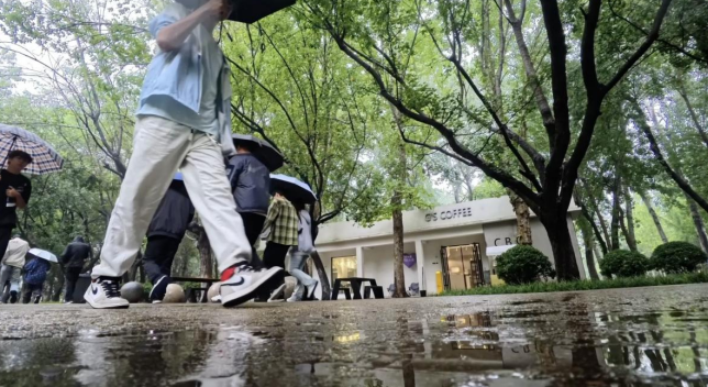 “空山新雨后,天气晚来秋。”王维笔下的秋意在校园重现,但这里没有空山的寂寥,只有青年学子蓬勃的朝气与对未来的憧憬。午后的操场跃动着蓬勃身影:银杏叶雨中,学生俯身拾起斑斓落叶,夹入书页作自然诗笺;篮球场上,跃起的弧线划破湛蓝晴空;林荫道旁,三五学子执卷诵读,落叶在脚边旋舞成蝶。雨后初霁,积水洼倒映着欢笑——孩童踏水嬉戏,伞花流转如虹,将秋的静谧点染为欢腾的乐章。